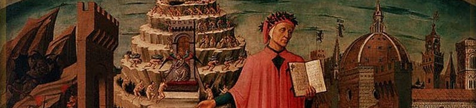 Пройдя преддверие ада, населённое душами ничтожных, нерешительных людей, они вступают в первый круг ада, так называемый лимб (А., IV, 25-151), где пребывают души добродетельных язычников, не познавших истинного Бога, однако приблизившихся к этому познанию и за то избавленных от адских мук. Здесь Данте видит выдающихся представителей античной культуры — Аристотеля, Эврипида и др. Следующий круг (ад имеет вид колоссальной воронки, состоящей из концентрических кругов, узкий конец которой упирается в центр земли) заполнен душами людей, некогда предававшихся необузданной страсти. Среди носимых диким вихрем Данте видит Франческу да Римини и её возлюбленного Паоло, павших жертвой запретной любви друг к другу. По мере того как Данте, сопутствуемый Вергилием, спускается всё ниже и ниже, он становится свидетелем мучений чревоугодников, принужденных страдать от дождя и града, скупцов и расточителей, без устали катящих огромные камни, гневливых, увязающих в болоте. За ними следуют объятые вечным пламенем еретики и ересиархи (среди них император Фридрих II, папа Анастасий II), тираны и убийцы, плавающие в потоках кипящей крови, самоубийцы, превращённые в растения, богохульники и насильники, сжигаемые падающим пламенем, обманщики всех родов, муки которых весьма разнообразны. Наконец Данте проникает в последний, 9-й круг ада, предназначенный для самых ужасных преступников. Здесь обитель предателей и изменников, из них величайшие — Иуда Искариот, Брут и Кассий, — их грызёт своими тремя пастями Люцифер, восставший некогда на Бога ангел, царь зла, обречённый на заключение в центре земли. Описанием страшного вида Люцифера заканчивается последняя песнь первой части поэмы.